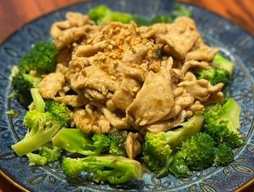 A simple yet flavorful dish consisting of sautéed broccoli fl orets with garlic, soy sauce, and a hint of black pepper along with choice of protein.